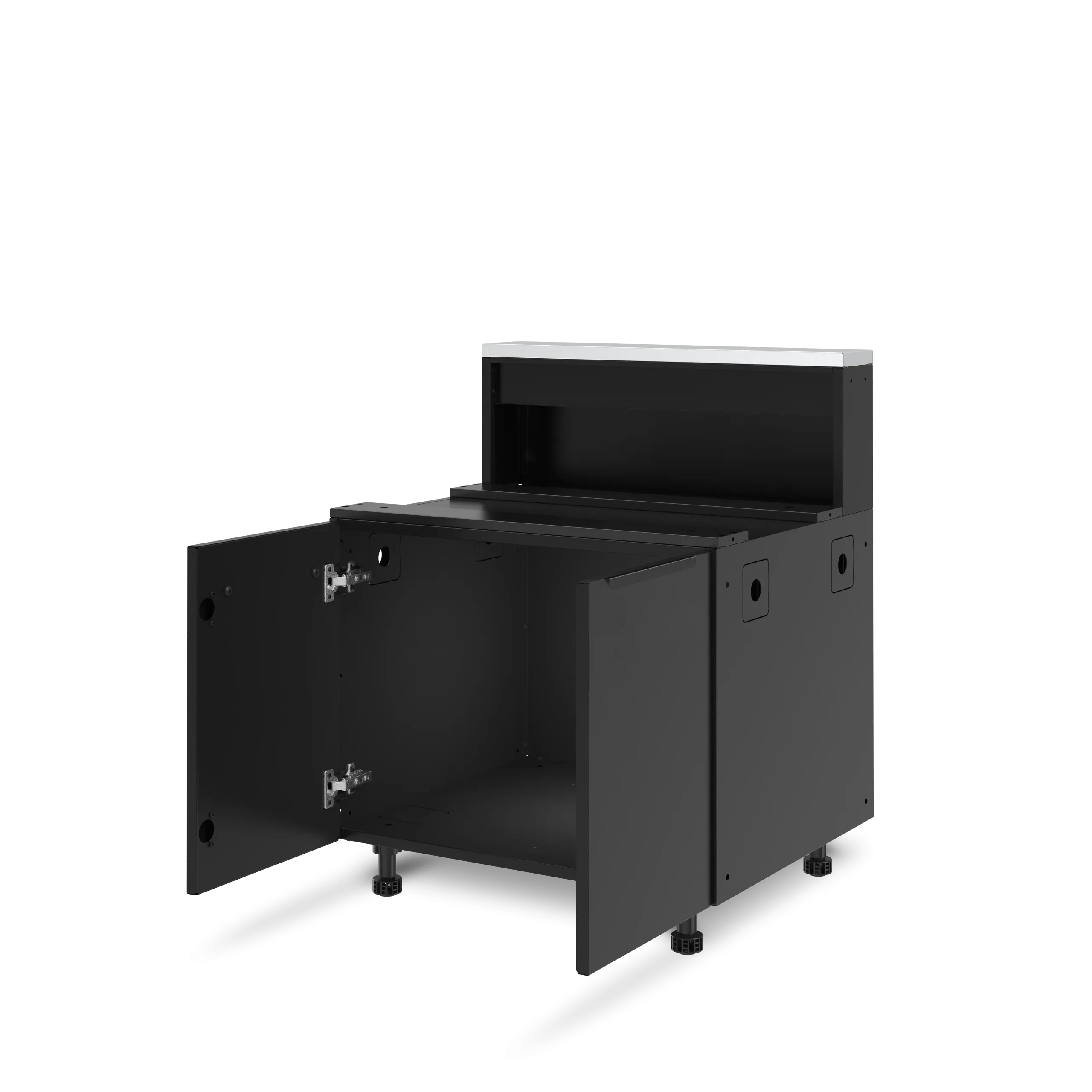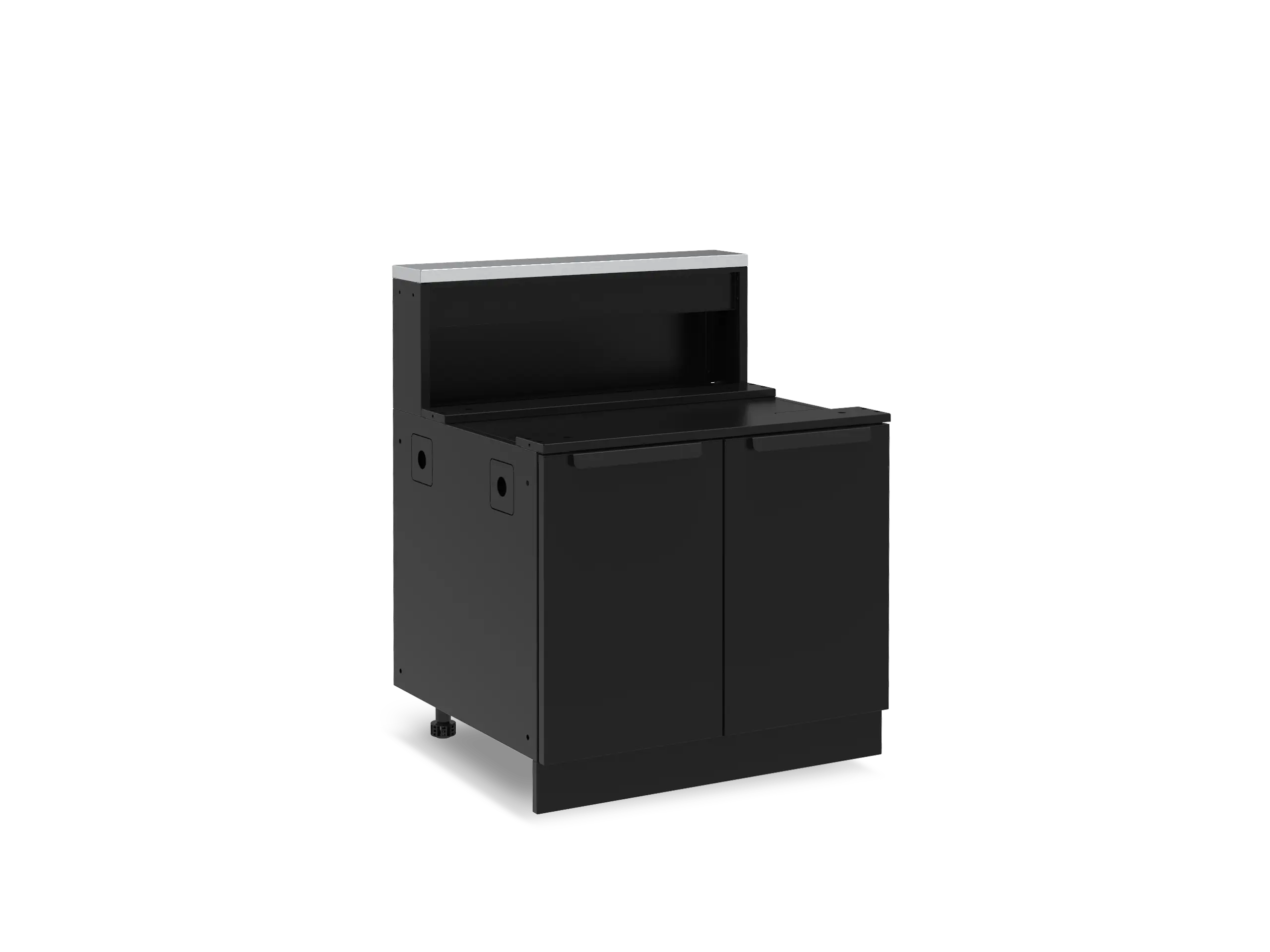 Elegantni modularni ormarić za vanjsku kuhinju, izrađen od crno lakiranog pocinčanog čelika. Opremljen je gornjom radnom pločom od nehrđajućeg čelika 430 te prostranom unutrašnjošću s dvokrilnim vratima za praktično pohranjivanje.