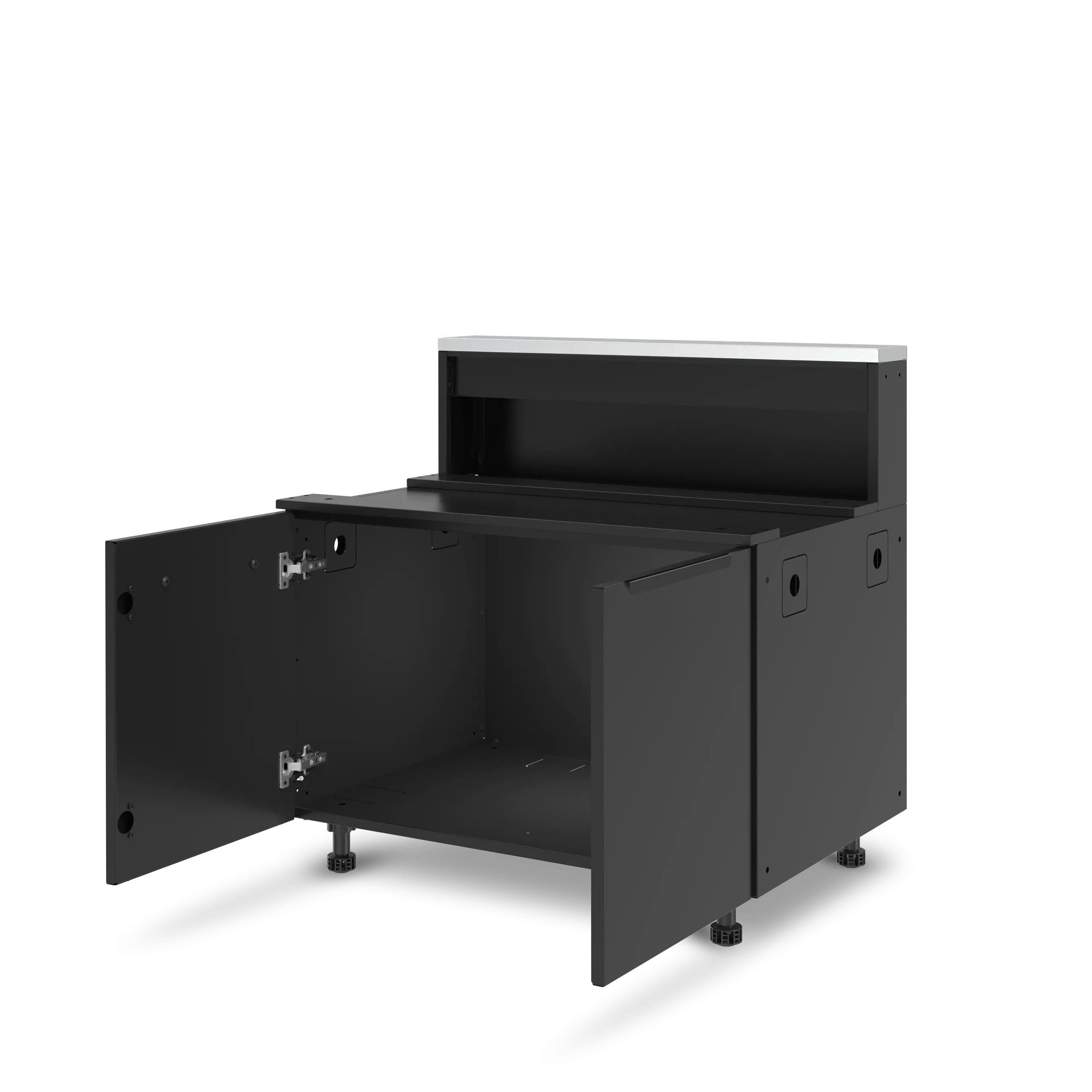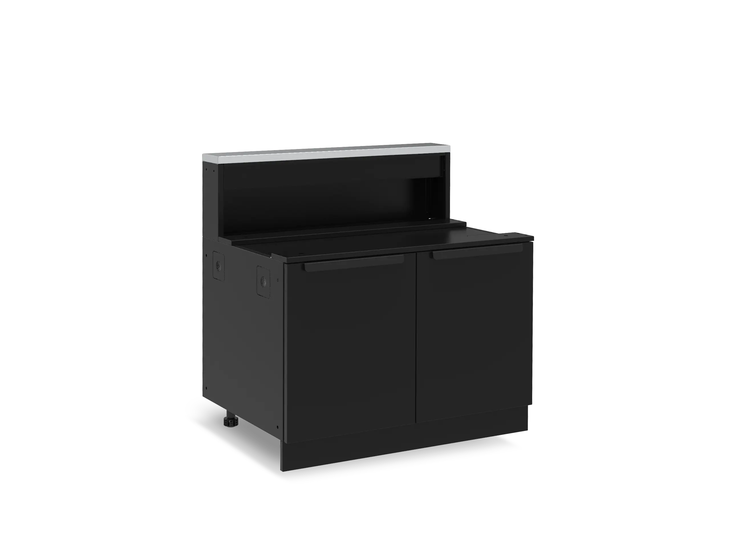 Modularni ormarić za vanjsku kuhinju, izrađen od crno lakiranog pocinčanog čelika. Na stražnjoj strani ugrađena je radna površina od nehrđajućeg čelika 430, a unutrašnjost nudi prostrani prostor za pohranu s dvokrilnim vratima. Idealan kao samostalan element ili kao dio cjelovite modularne vanjske kuhinje.